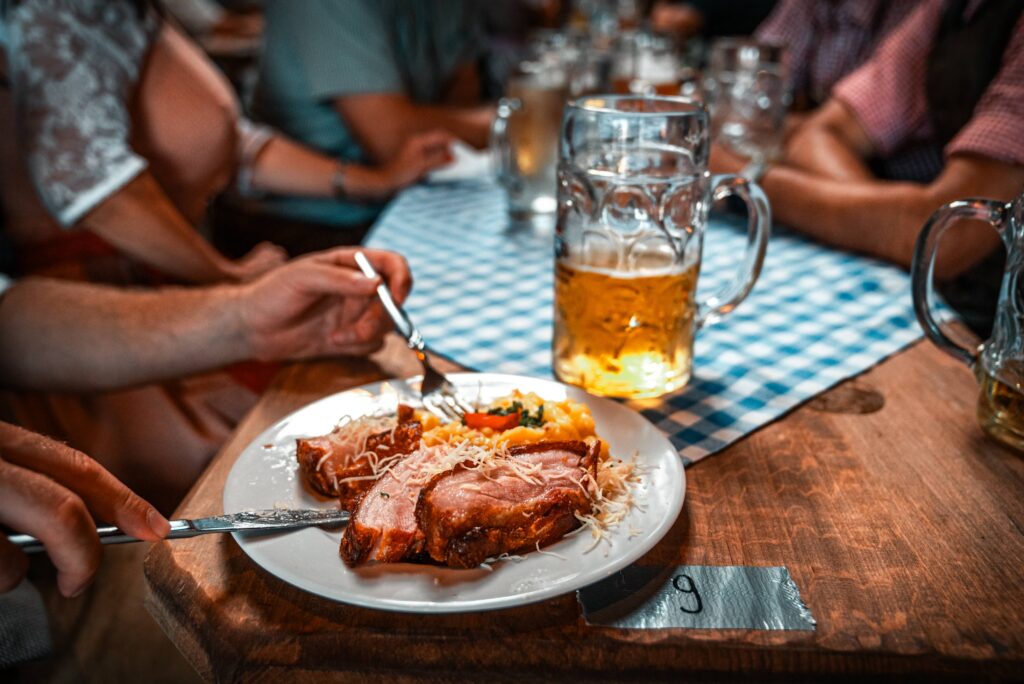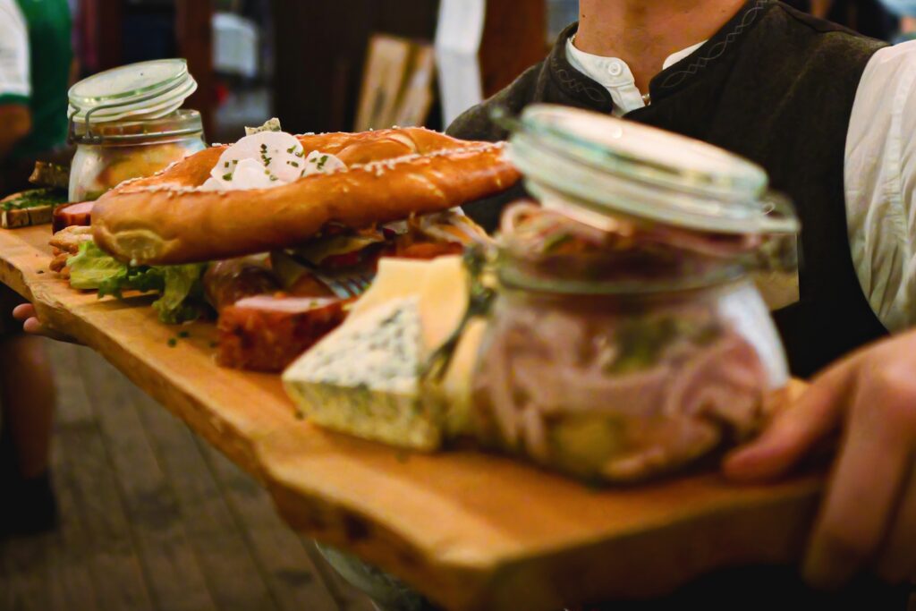 Natürlich darf auch der Genuss nicht zu kurz kommen: Unsere Küche bringt euch klassische Schmankerl, herzhafte Brotzeiten, knusprige Hendl, saftige Braten und süße Versuchungen – frisch, regional und mit viel Liebe zubereitet. Dazu schenken wir das süffige Festbier vom Hofbräuhaus Traunstein aus – kräftig, vollmundig und genau richtig für eine lange Volksfestnacht.